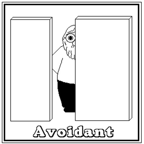Turning to the last group of scared, introverted, anxious personality disorders, we see a failure of heroic action which reinforces guilt and anxiety, thereby making the hurdle ever larger until it is mountainous. The avoidant person cannot attepmt an attack; he runs in response to his lack of strength. But life becomes increasingly impoverished thereby increasing the anxiety. He wants to live, to make real his desires but, this involves a risk. To avoid the risk, to avoid the possibility of failure, he runs to failure. In relational terms, out of fear of being unloved, one runs from the possibility of love.